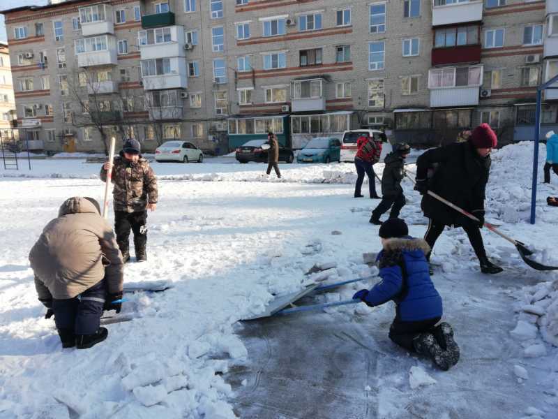 Жители сформировали хоккейную коробку, почистили площадку, сделали снежные бортики. В несколько слоев хоккейное поле уже залили. Кроме того, во дворе появилась снежная горка. Участвовали как взрослые, так и дети! Помогли в реализации идеи по заливке катка депутат округа № 8 Вера Борисовна Калманова и сотрудники мэрии города.