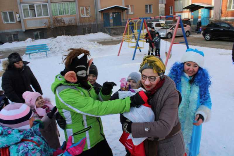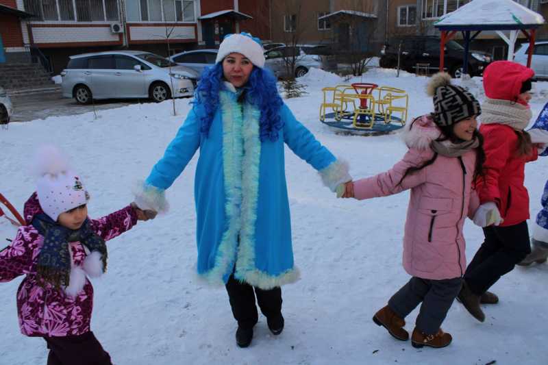И действительно, дворы, только что казавшиеся пустыми и тихими, с приездом костюмированной новогодней бригады мгновенно превращались в праздничные площадки. Мобильный отряд организаторов привозил с собой и музыку, и развлекательную программу, и, конечно, подарки.
