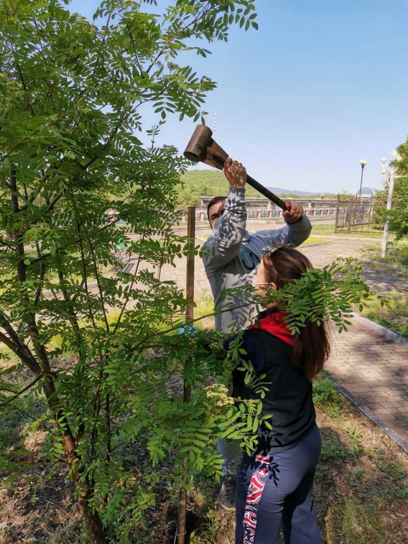 16 мая депутаты городской Думы - Артем Куликов, Вера Калманова, Ольга Зинковская, Ольга Доманова совместно с зав.лабораторией региональных биоценологических исследований ИКАРП ДВО РАН, к.б.н. Т.А. Рубцовой оценили состояние молодых деревьев.