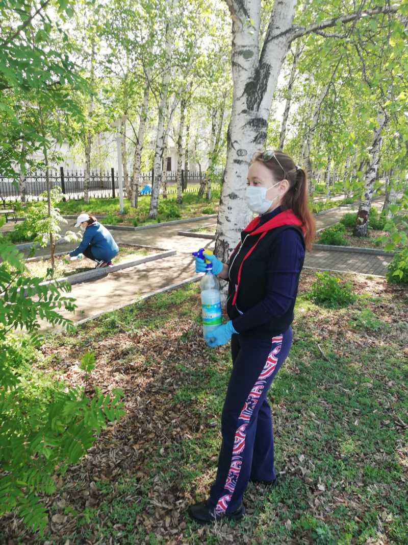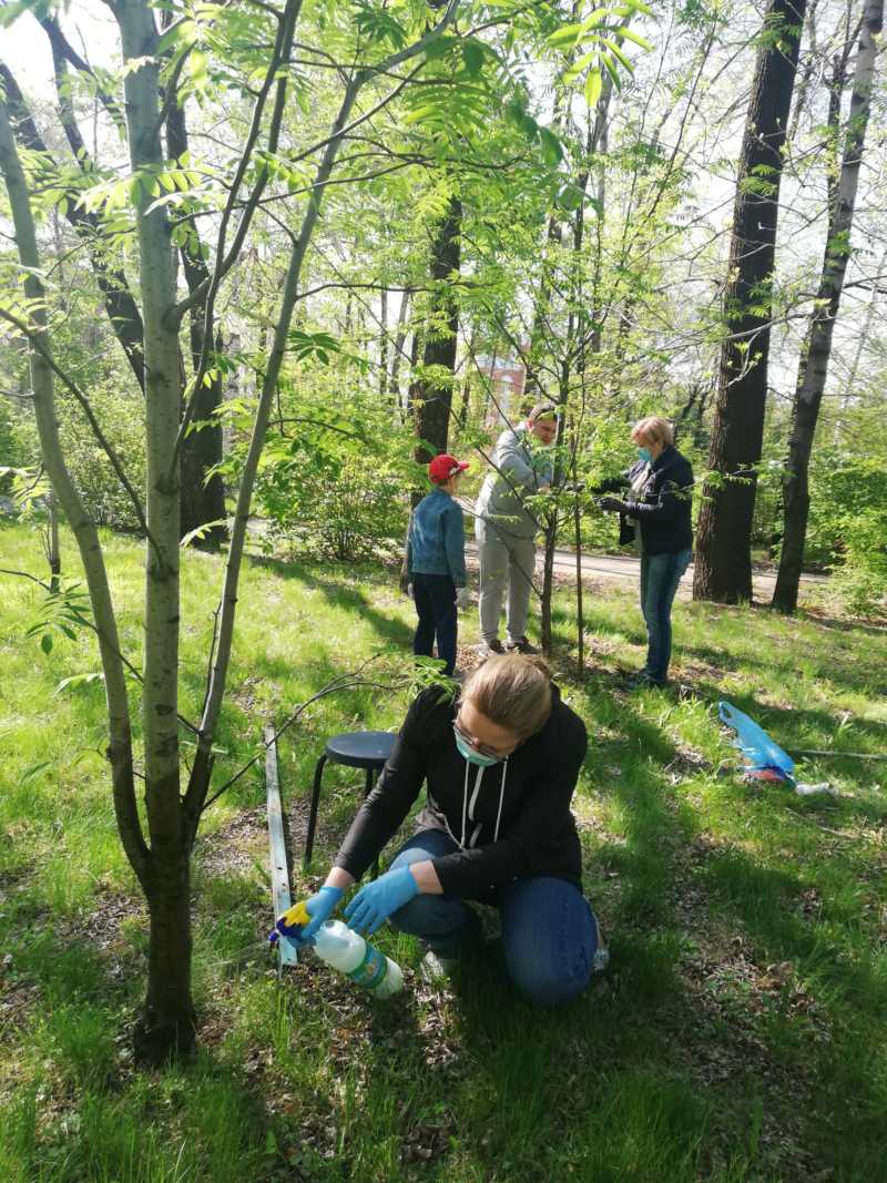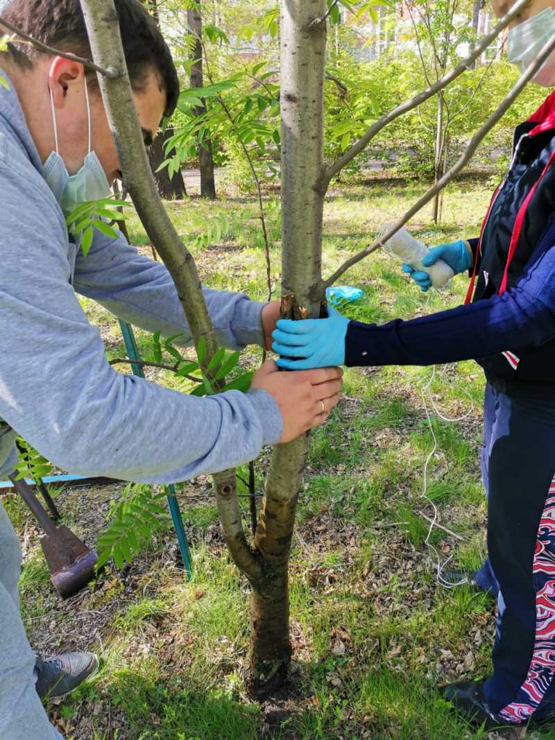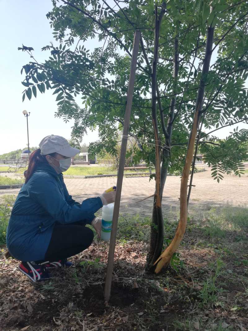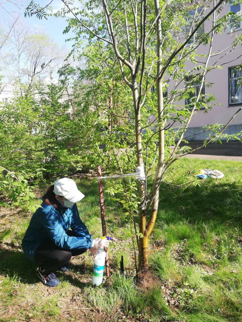 После обхода была проведена работа по подвязке и обработке зеленных насаждений от вредителей.