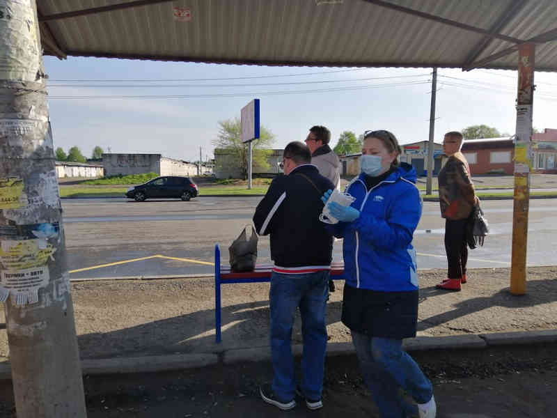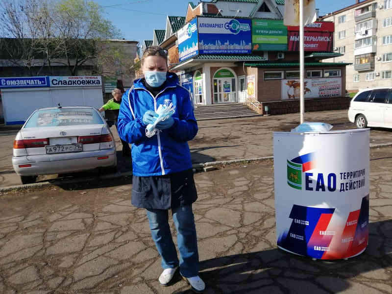 На площадках, где наблюдается традиционное скопление людей в Биробиджане, волонтеры партии «Единая Россия» раздавали горожанам защитные маски.