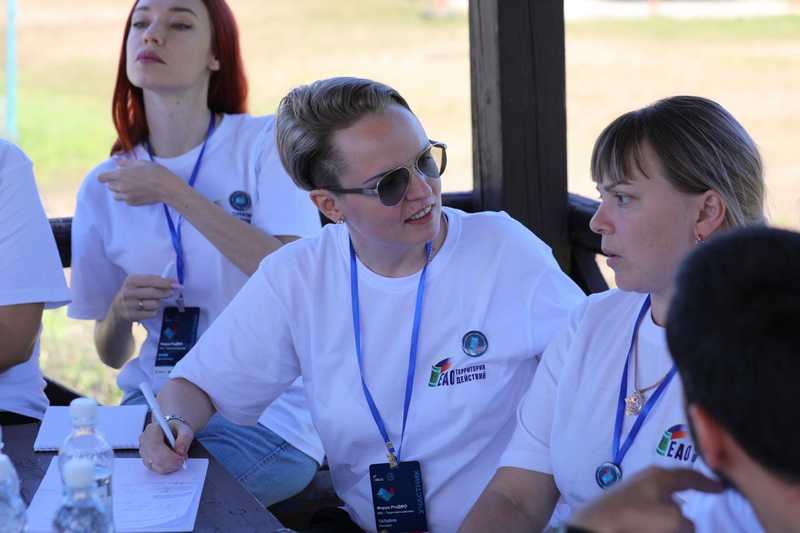 Финалом сессии стала мастерская "Фабрика смыслов", которую провела заместитель председателя правительства ЕАО Мария Костюк. Всех участников поделили на команды и предложили найти пути решения актуальных проблем области. Председатель городской Думы Антон Болтов и депутат гордумы, председатель комиссии по вопросам ТОС и городского хозяйства Ольга Зинковская выступили наставниками для двух групп.