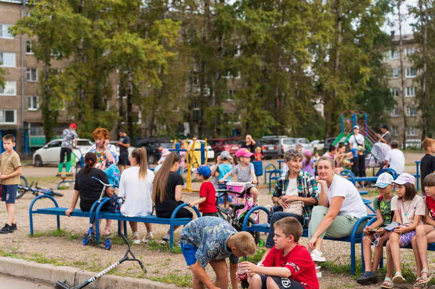 Дети и их родители приняли участие в разминке и конкурсах, которые провёл спортивный клуб «Союз». Мероприятие прошло на игровой площадке по ул. Бумагина 1.