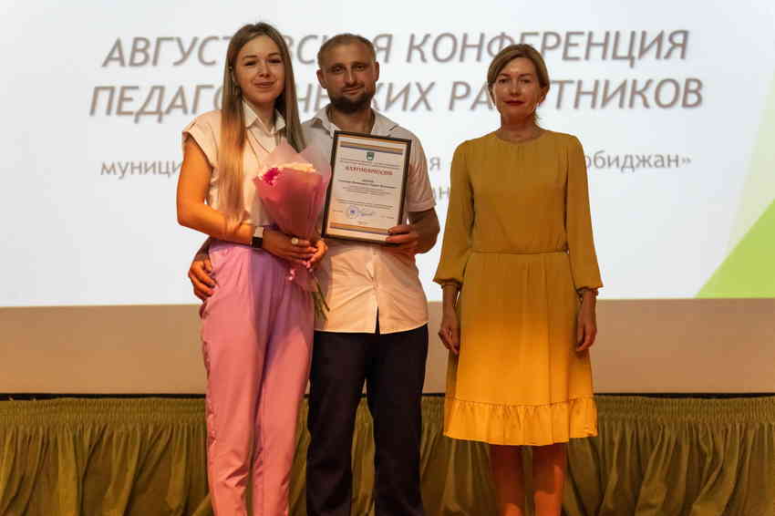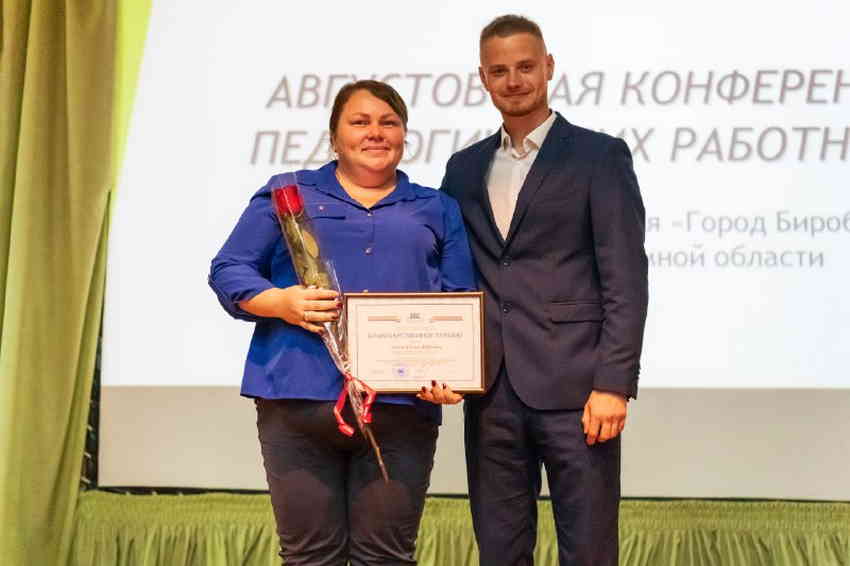 Коллективы города подарили педагогам свои творческие номера. Также сами преподаватели продемонстрировали на сцене гимназии свои музыкальные способности. Также со словами поздравлений к педагогам обратился председатель городской Думы Биробиджана Антон Болтов.