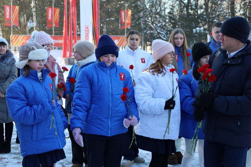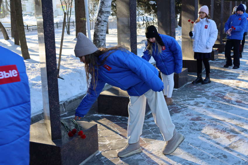 Сегодня, в День Героев Отечества, депутаты городской Думы Биробиджана совместно с волонтерами «Движения Первых» и «Молодой Гвардии Единой России» возложили цветы к Вечному огню и пилонам Героев в сквере Победы.