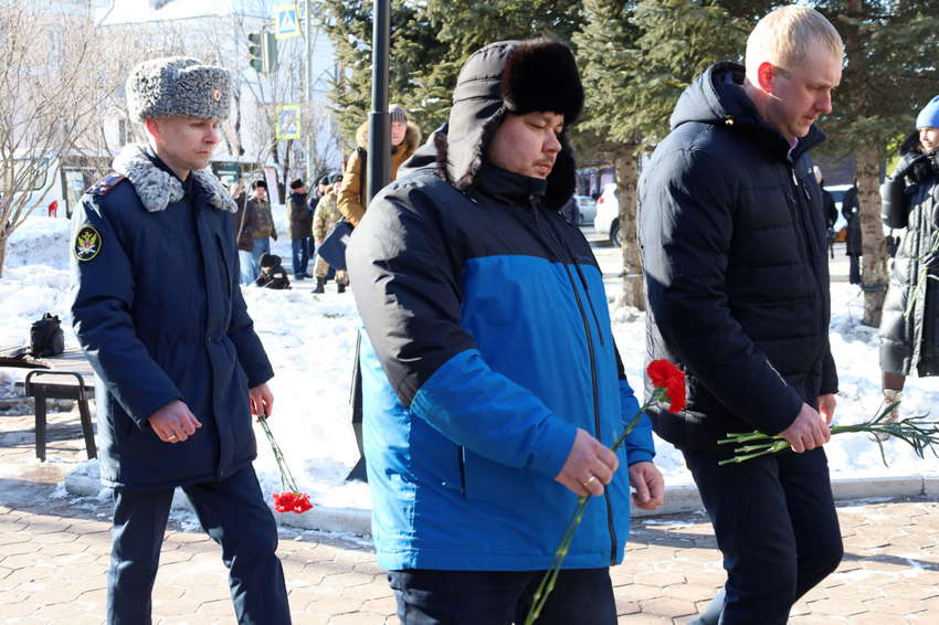 Депутаты городской Думы Биробиджана возложили цветы к памятнику воинам-интернационалистам