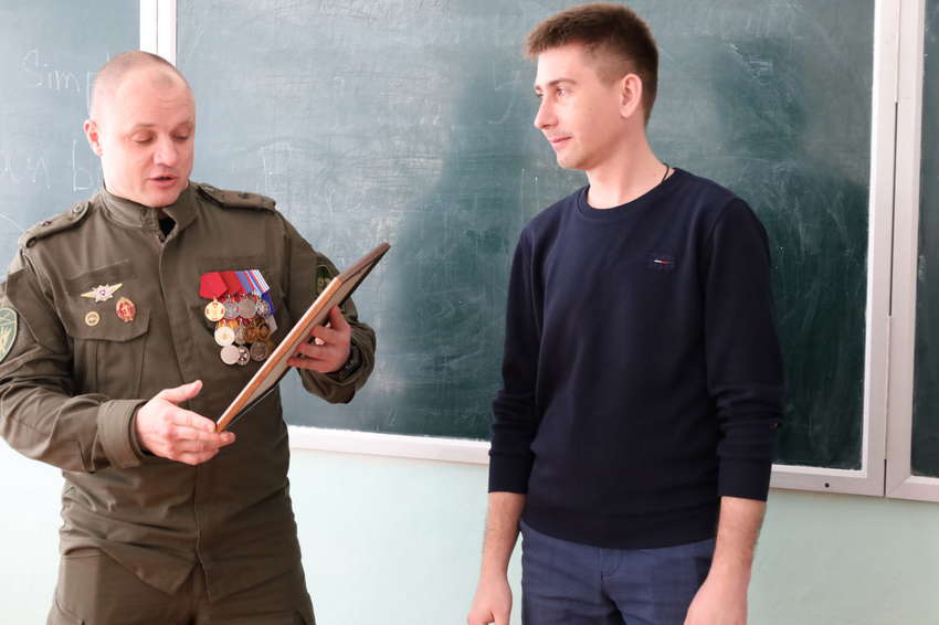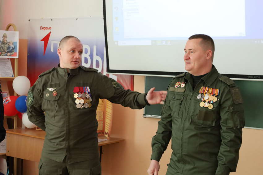 Сергей Анатольевич и Игорь Михайлович поделились с учениками своими воспоминаниями о службе, боевом братстве и трудностях, с которыми сталкиваются военные в зоне боевых действий. Они рассказали о том, как важно оставаться верным своим принципам, быть бдительным и не поддаваться на уловки тех, кто пытается вовлечь молодёжь в противоправные действия.