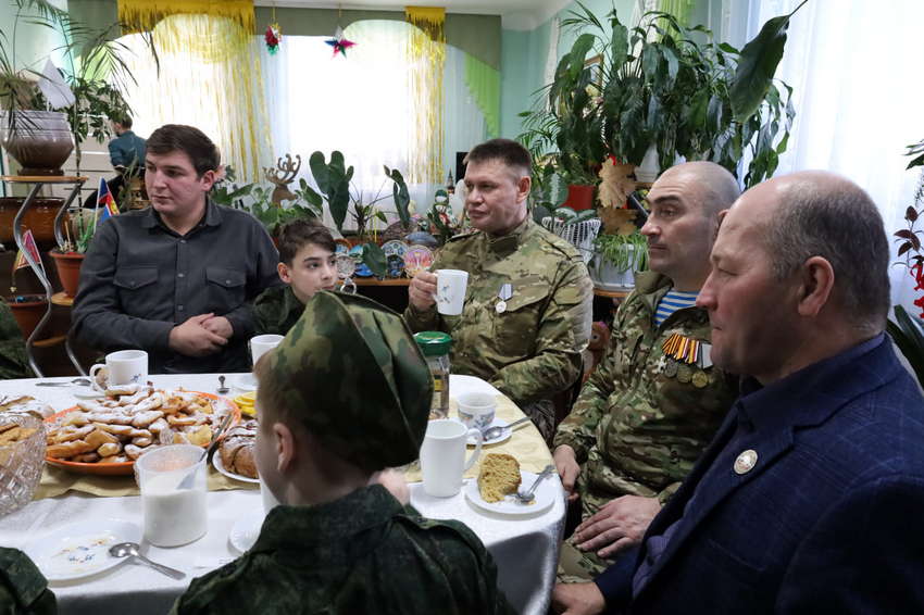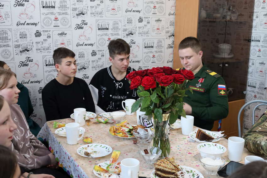 Юные артисты исполнили песни, стихи и танцы, посвящённые мужеству и героизму защитников Родины. После концерта ветераны СВО присоединились к чаепитию, где в тёплой атмосфере пообщались с воспитанниками детского дома.