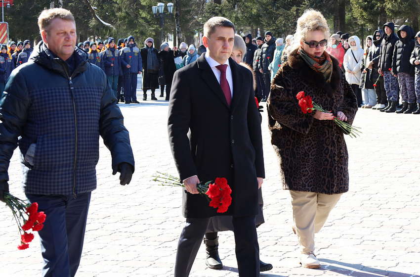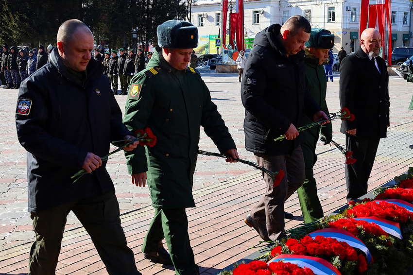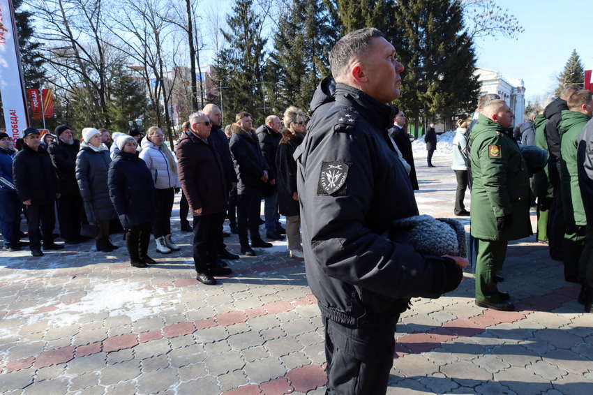 Накануне Дня защитника Отечества в сквере Победы состоялась торжественная церемония возложения цветов к мемориалу. В мероприятии приняли участие первые лица области и города, ветераны специальной военной операции и депутаты городской Думы Биробиджана.