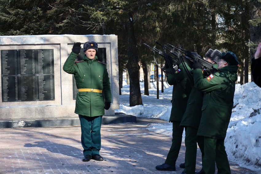 В сквере Победы Биробиджана прошло возложение цветов накануне Дня защитника Отечества